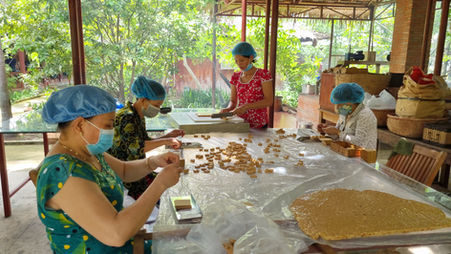 Visiting local mat-weaving/ coconut village to learn about the Mekong life.